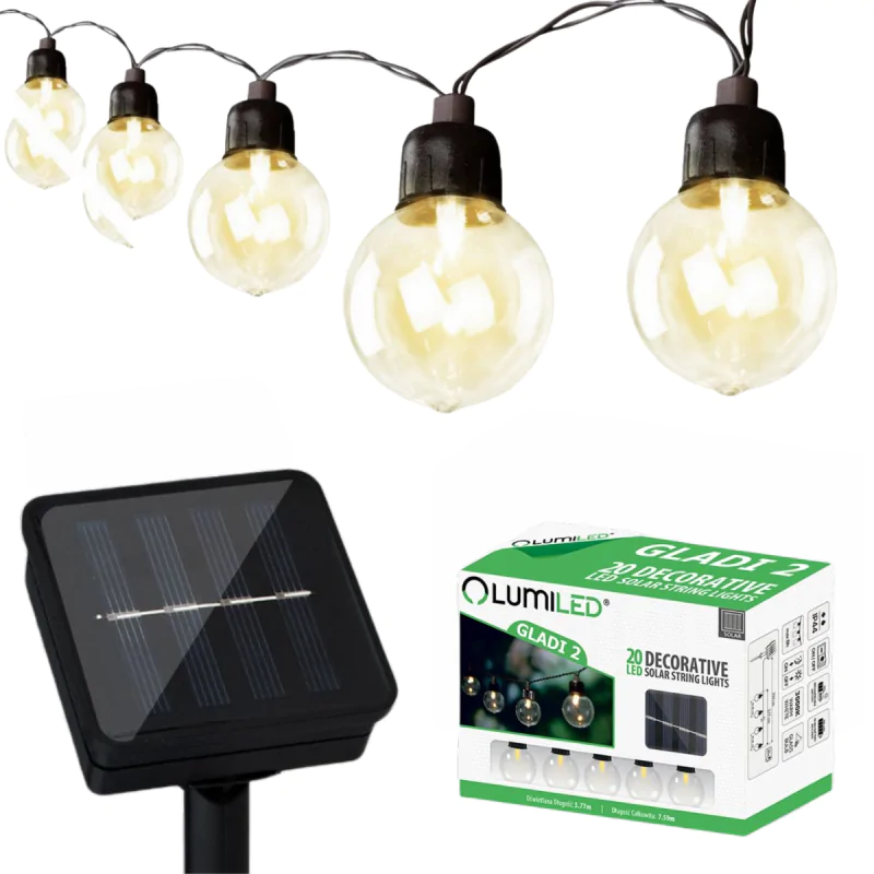 Girlanda solarna ogrodowa z ozdobnymi kuleczkami z ciepłym światłem 20xLED 7,5m GLADI LUMSOL0006 LUMILED