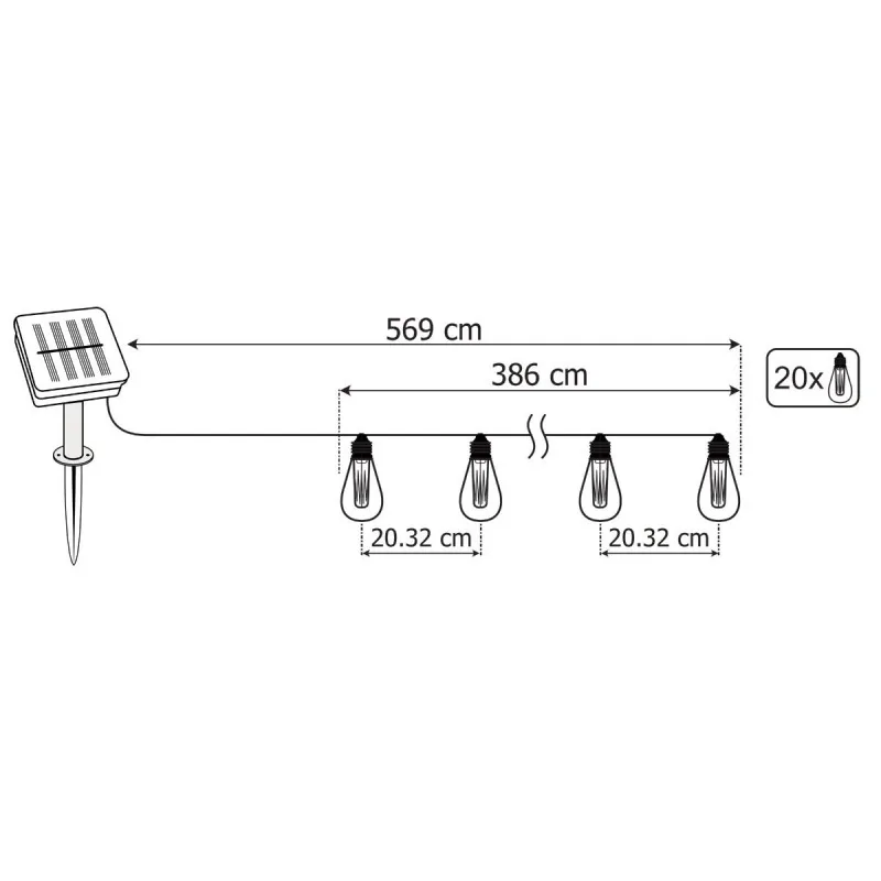 Ogrodowa girlanda solarna 20xLED A60 5,69m 3000K HELIC LUMSOL0020 LUMILED
