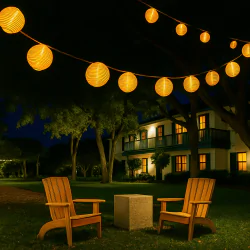 - Dekoracyjny design: Nastrojowe kule świetlne tworzą przytulny klimat w ogrodzie.