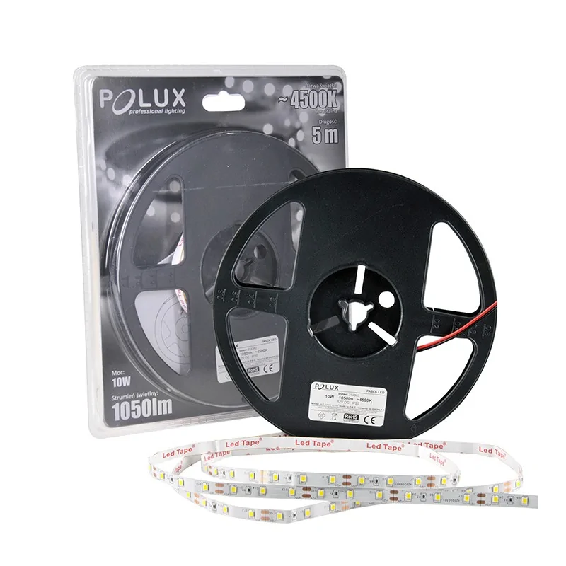 Taśma LED marki POLUX to świetne rozwiązanie, które może być zastosowane w każdym miejscu, dzięki swojej elastyczności. Charakteryzuje się niskim poborem energii przy wysokiej wydajności. Produkt wyposażony został w diody led, które świecą neutralną barwą światła o temperaturze barwowej 4000K, a jego strumień świetlny równy jest 1050 lumenów. Produkt działa z mocą 10W, a jego szacowany czas żywotności to około 25000h oraz 12500 cykli on/off. Do prawidłowego działania taśmy led należy dokupić osobno odpowiedni zasilacz elektroniczny, który należy dostosować do długości taśmy. Produkt przeznaczony jest tylko do użytku wewnętrznego.