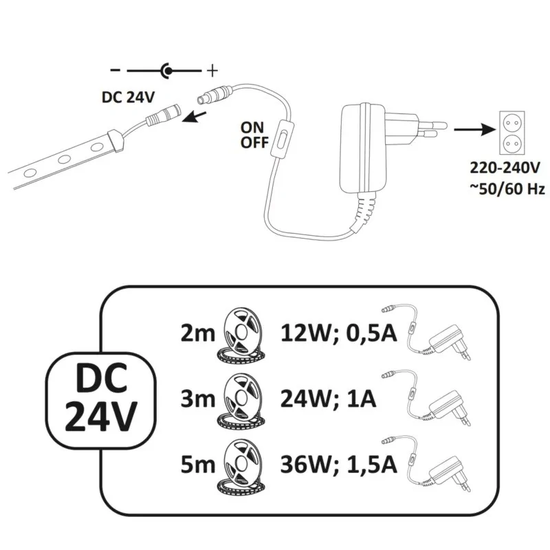 Zestaw 5-metrowej taśmy led z zasilaczem i włącznikiem