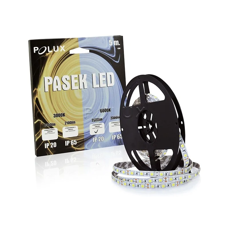 Taśma LED marki POLUX to świetne rozwiązanie, które nada się do dekoracji pomieszczeń, mebli czy reklam. Produkt wyposażony został w diody led, które świecą zimnym białym światłem o temperaturze barwowej 6000K i strumieniem świetlnym 2500 lumenów. Produkt działa z mocą 28W, a jego szacowany czas żywotności to około 25000h oraz 12500 cukli on/off. Do prawidłowego działania taśmy led należy odkupić osobno odpowiedni zasilacz elektroniczny, który należy dostosować do długości taśmy. Produkt przeznaczony jest tylko do użytku wewnętrznego- IP20.