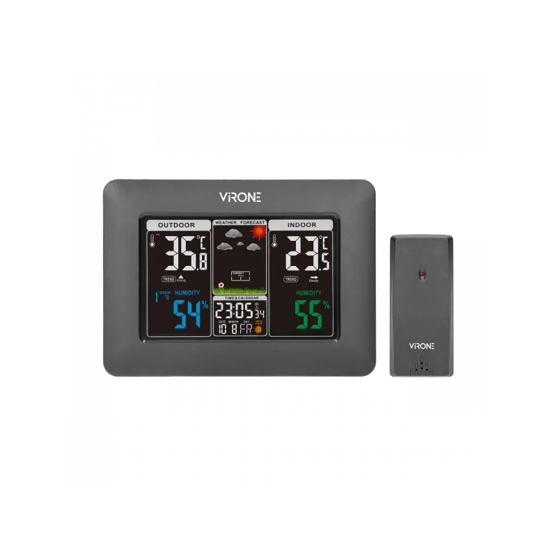 Nowoczesna stacja pogodowa bezprzewodowa ORNO to urządzenie, które znajdzie zastosowanie w każdym domu. Czarny kolor świetnie wkomponuje się w każdym miejscu. Bezprzewodowa stacja pogodowa sterowana radiowo, wyświetla wartości temperatury i wilgotności wewnętrznej i zewnętrznej. Termometr przeznaczony jest do odbierania sygnału czujnika zewnętrznego, który przesyła dane do stacji pogodowej drogą radiową. Stacja wewnętrzna przeznaczona jest wyłącznie do użytku wewnątrz pomieszczeń. Możliwość rozbudowy o dwa dodatkowe czujniki zewnętrzne.
