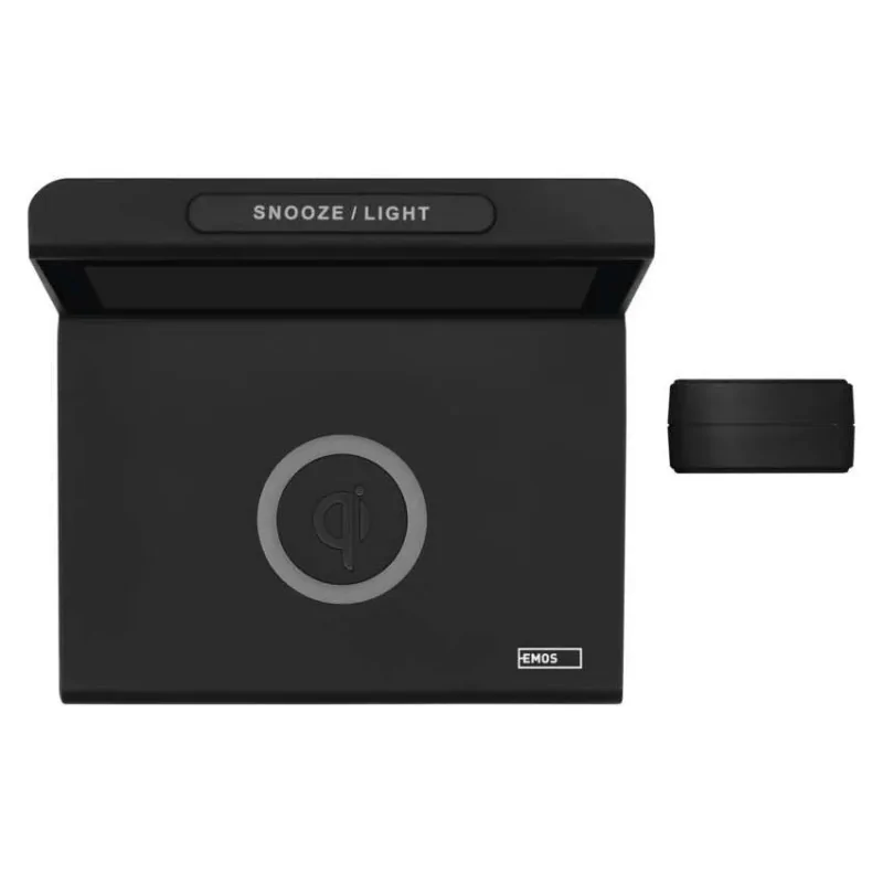 Czarna stacja meteorologiczna z bezprzewodowym ładnowaniem telefonu EMOS E8010