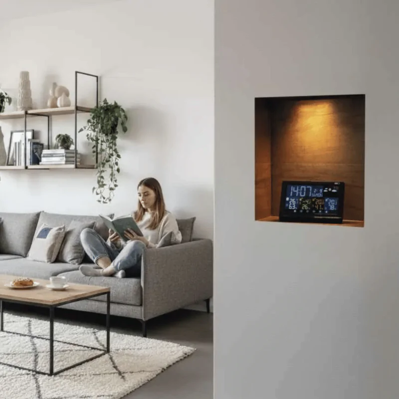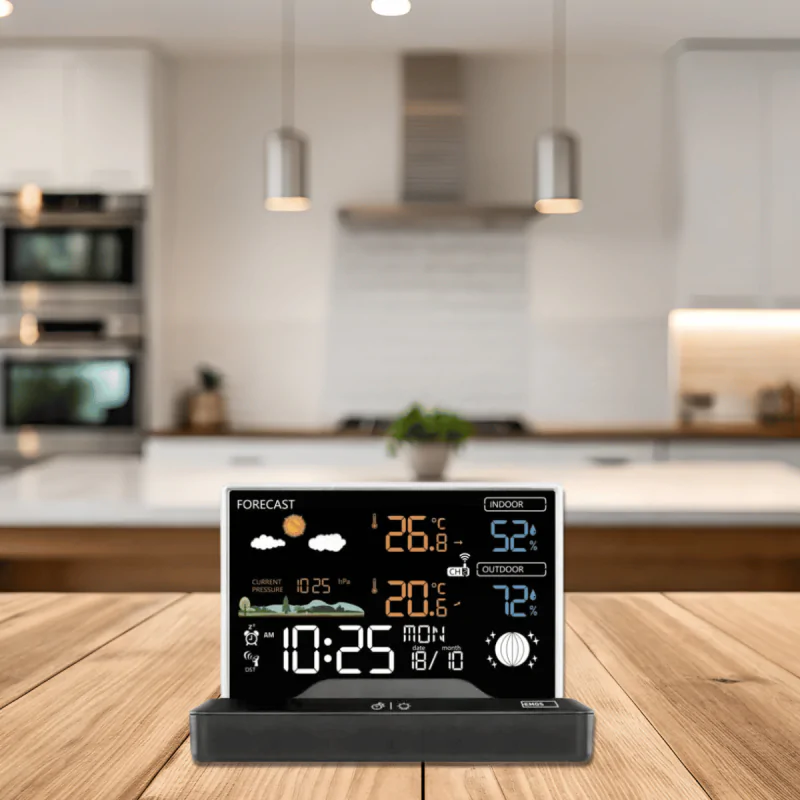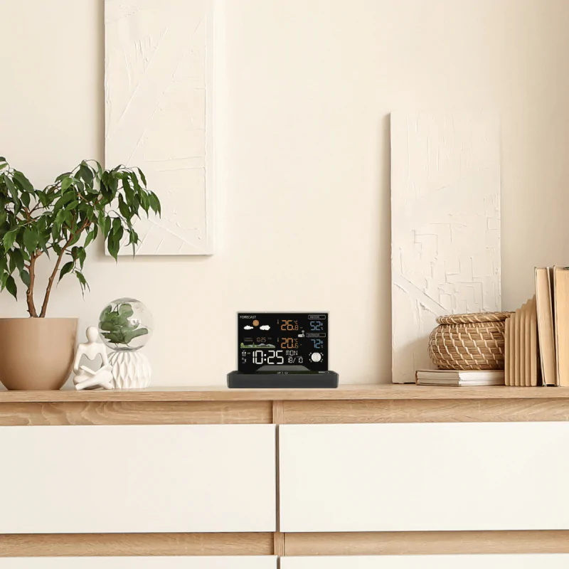 Bezprzewodowa konstrukcja stacji meteorologicznej gwarantuje wygodę użytkowania i pełną swobodę instalacji. Inteligentne funkcje wspierają codzienną organizację czasu, zapewniając poczucie kontroli, komfortu i spokoju. To niezawodne rozwiązanie dla osób, które cenią funkcjonalność, estetykę oraz praktyczne wsparcie w codziennym życiu.