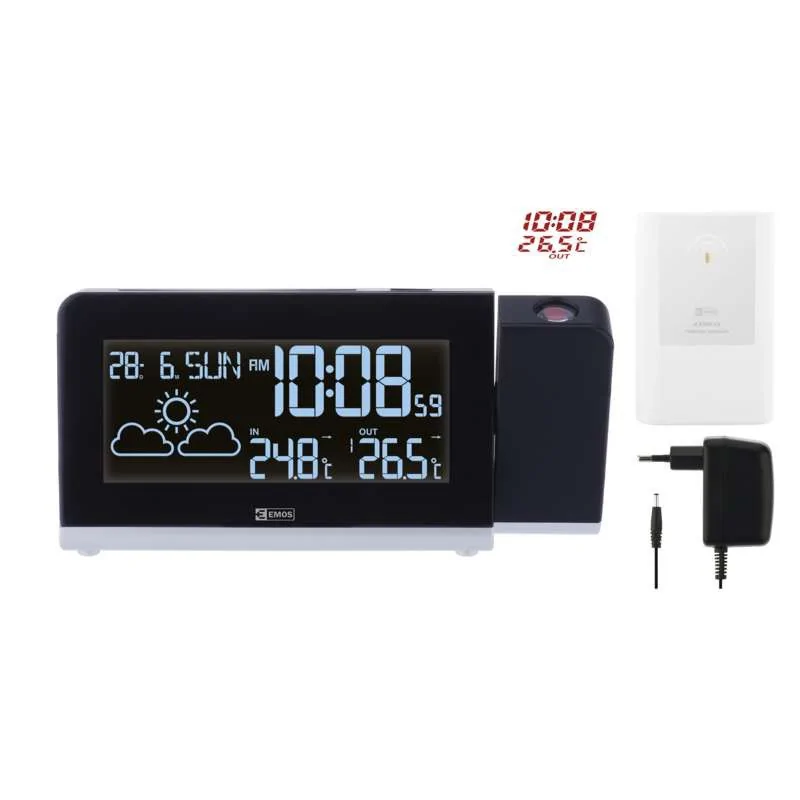 Nowoczesna stacja meteorologiczna E8466 firmy EMOS to doskonałe rozwiązanie, dzięki któremu deszcz Cię nie zaskoczy i będziesz wiedzieć na jaką pogodę się przygotować. Prezentowany model posiada wyświetlacz najnowszej technologii, co zapewnia widoczność prawie pod każdym kątem. Zależnie od aktualnej temperatury wyświetlacz zmienia kolor. Stacja pogodowa została również wyposażona w inne dodatkowe funkcje np. prognozę pogody, projekcję czasu i temperatury, budzik. Produkt służy także do mierzenia temperatury wewnętrznej oraz zewnętrznej i posiada funkcję zapisywania minimalnej i maksymalnej temperatury. Stacja zasilana jest jedną baterią CR2032, która znajduje się w zestawie). Do czujnika należy dokupić dwie baterie 1,5 V AA.