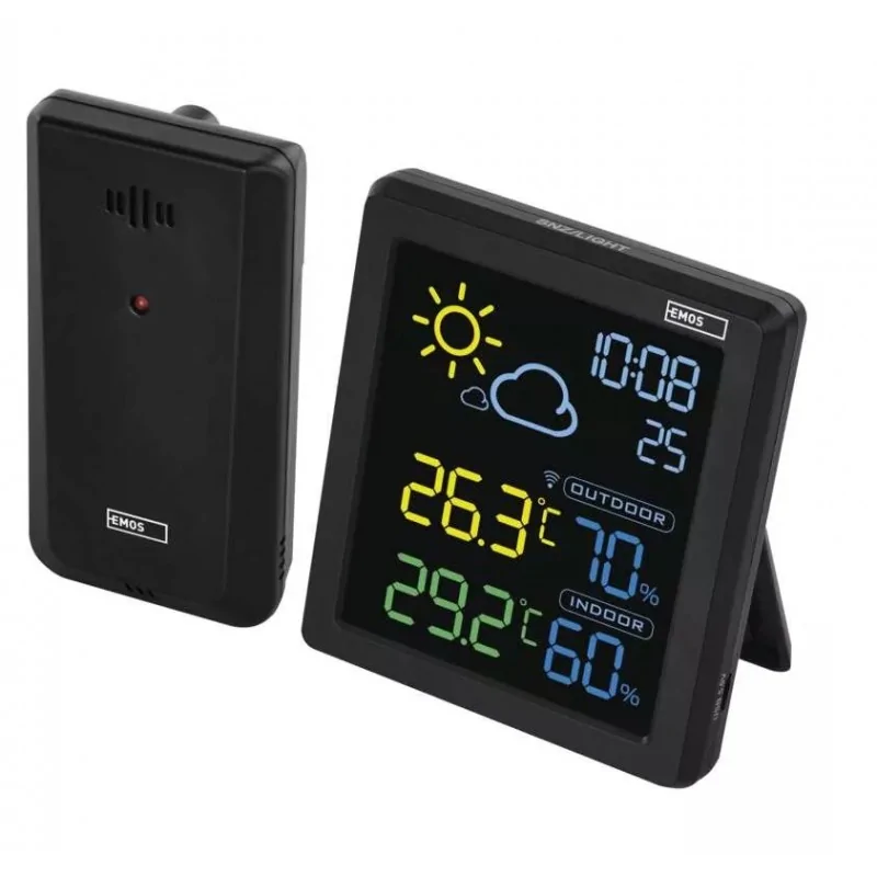 Tania stacja pogodowa meteo czarna bezprzewodowa na baterie E8647 EMOS