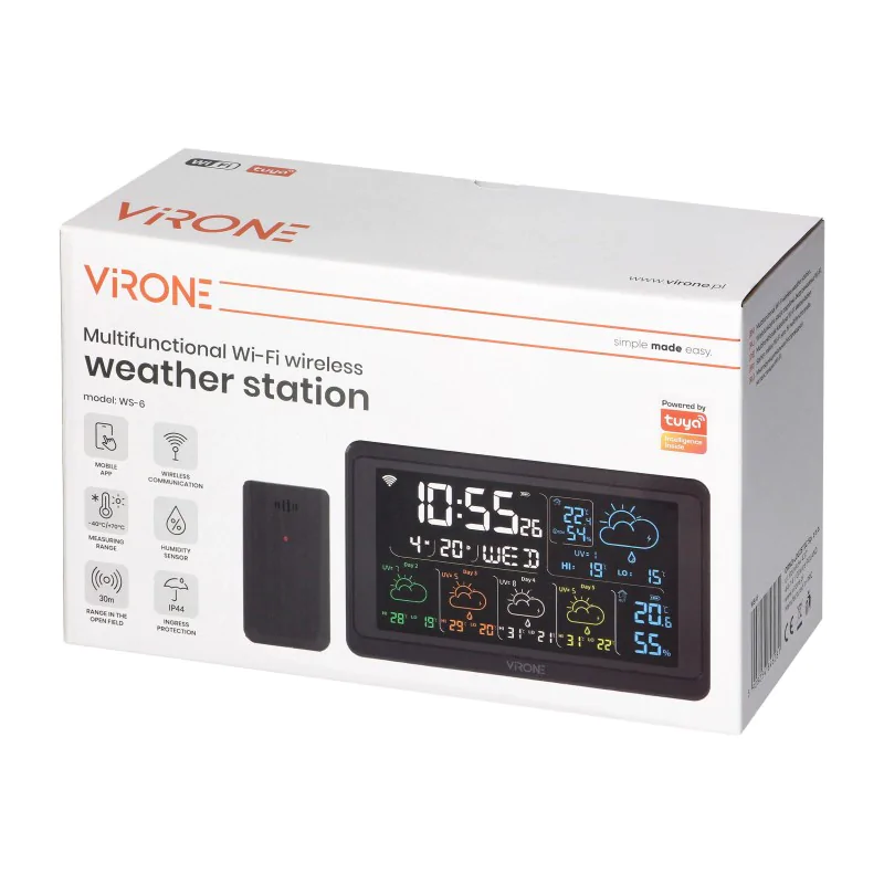 Wielofunkcyjna bezprzewodowa stacja pogodowa na Wi-Fi czarna TUAY WS-6 ORNO