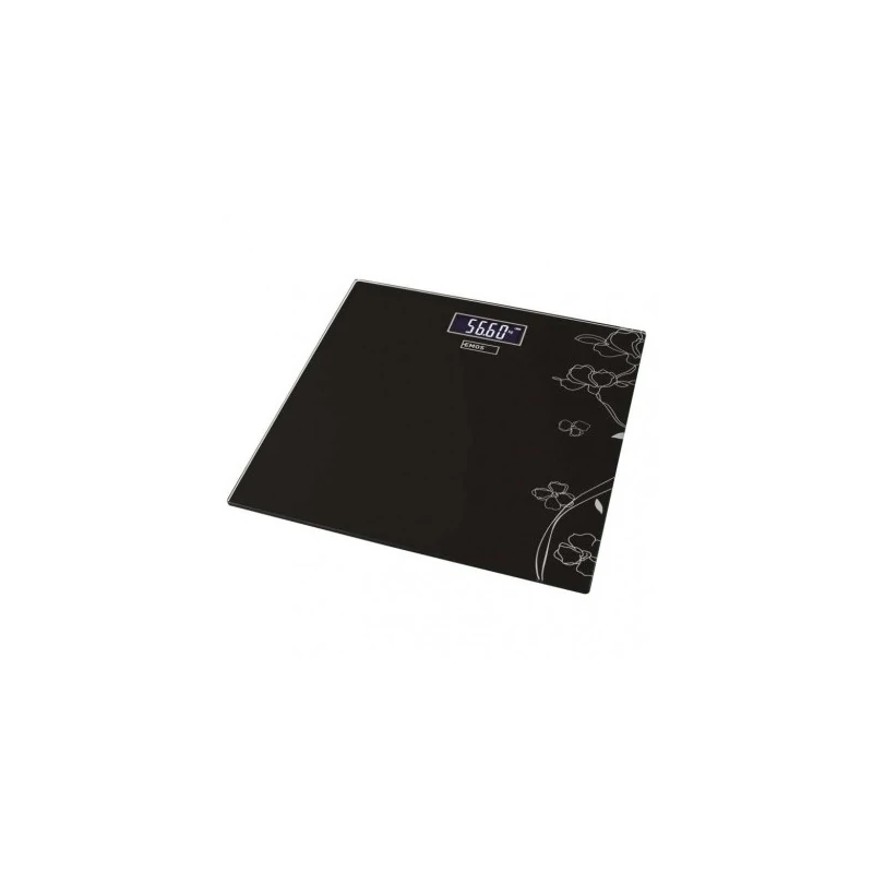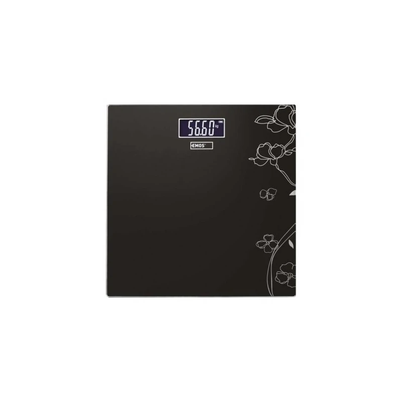 Czarna waga łazienkowa EV106 marki EMOS wykonana została ze szkła hartowanego i ozdobiona jest wzorkami, co dodaje jej ciekawszego wyglądu. Prezentowany produkt to niezbędnik, który powinien znaleźć swój kącik w każdej łazience. Dodatkowo waga łazienkowa nie potrzebuje dostępu do prądu, ponieważ zasilana jest bateryjnie- 2x1,5V AAA (w zestawie). Prezentowany model wagi wyposażony został również w podświetlany wyświetlacz LCD, na którym ukazywana jest wartość z dokładnością do 100g. Waga łazienkowa posiada również funkcję automatycznego wyłączenia po 20 sekundach.