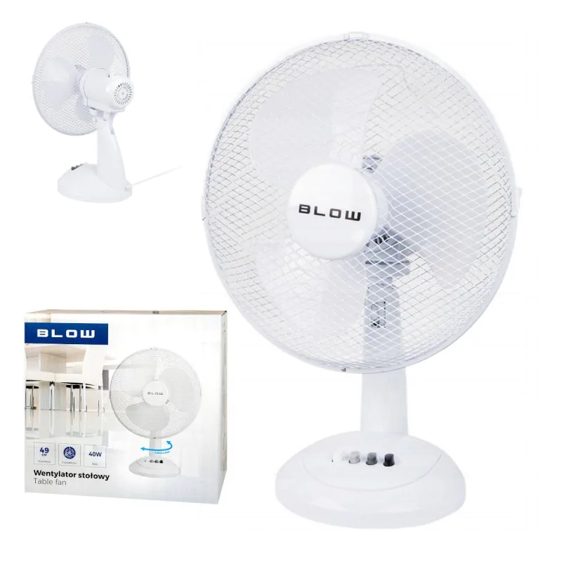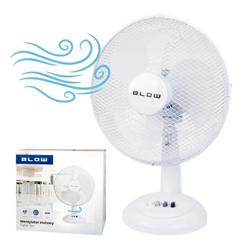 Wentylator marki BLOW to idealne rozwiązanie na upalne dni. Dzięki nowoczesnej konstrukcji i wydajnemu silnikowi zapewnia skuteczne chłodzenie przy zachowaniu cichej pracy. Trzy poziomy prędkości oraz funkcja oscylacji sprawiają, że świeże powietrze dociera równomiernie do każdego zakątka pomieszczenia.
