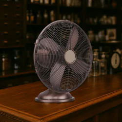Miedziany retro wentylator biurkowy