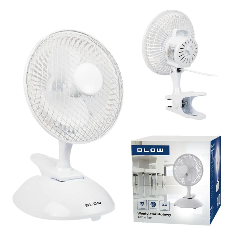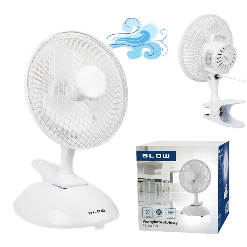 Wentylator na biurko na upały Wiatrak z klipsem i podstawą 2w1 25W 15cm BLOW