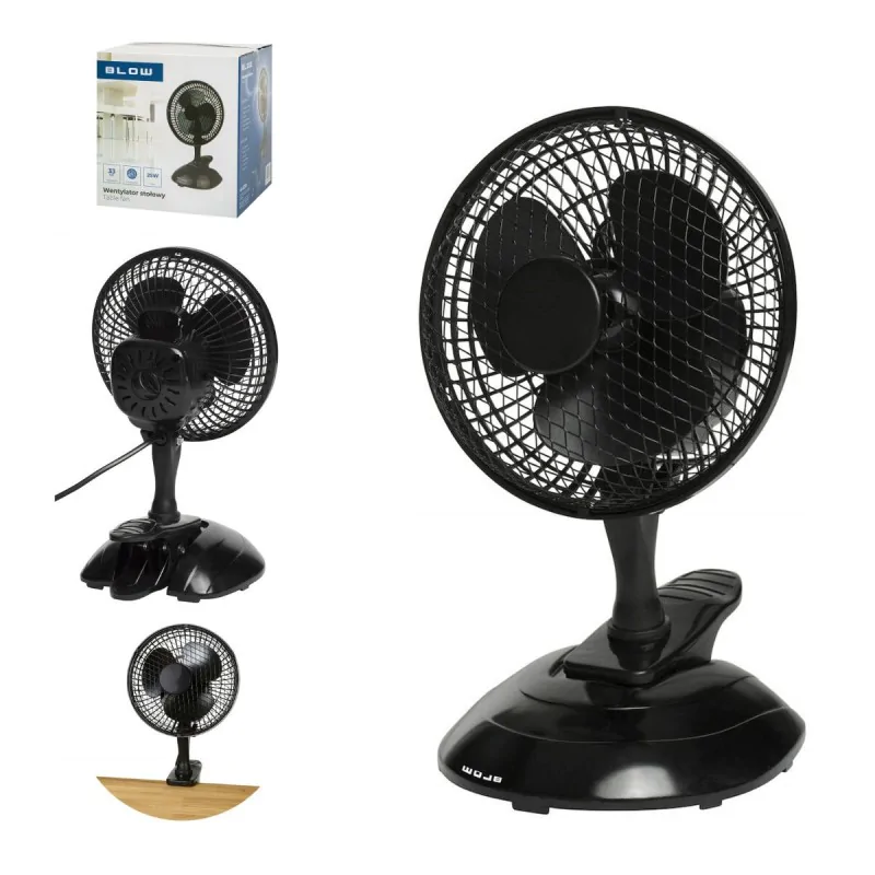 Wentylator na biurko Wiatrak czarny z klipsem i podstawą 2w1 25W 15cm BLOW