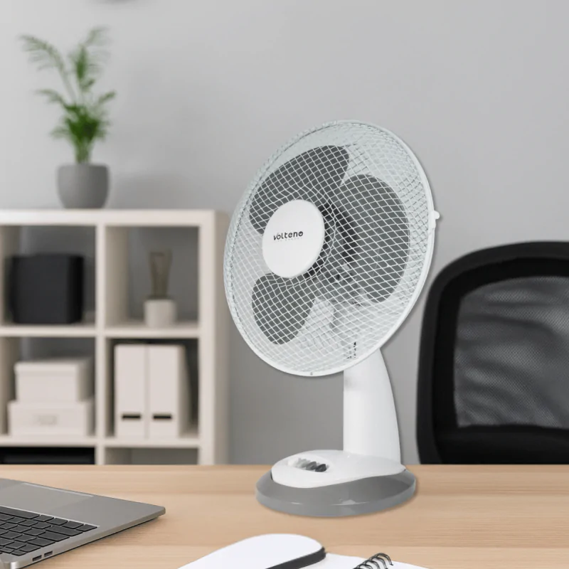 Wentylator biurkowy stojący VOLTENO to idealne rozwiązanie dla osób poszukujących skutecznego chłodzenia w nowoczesnej formie. Dzięki kompaktowym wymiarom oraz stylowej, białej obudowie doskonale wpasuje się zarówno w przestrzeń domową, jak i biurową. Jego uniwersalny wygląd sprawia, że nie zaburza estetyki wnętrza, a przy tym oferuje wyjątkową funkcjonalność.