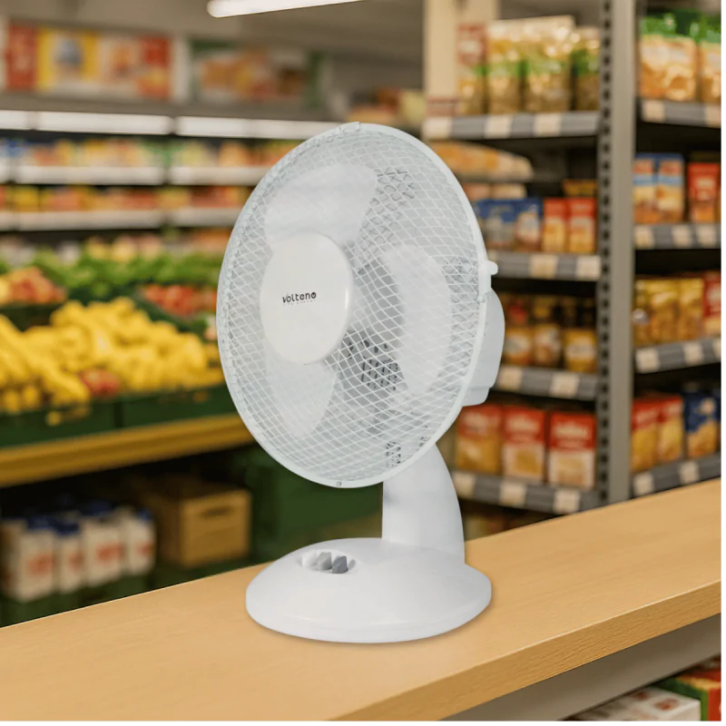Wentylator biurkowy biały VOLTENO to idealne rozwiązanie na letnie dni zarówno w domu, jak i biurze. Dzięki kompaktowym wymiarom i uniwersalnej kolorystyce, wiatrak doskonale wpasowuje się w różnorodne aranżacje – od klasycznych po nowoczesne. Jego lekka forma umożliwia łatwe przenoszenie między pomieszczeniami, a elegancki wygląd sprawia, że pełni nie tylko funkcję praktyczną, ale i estetyczną.