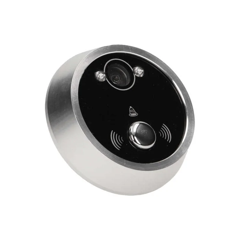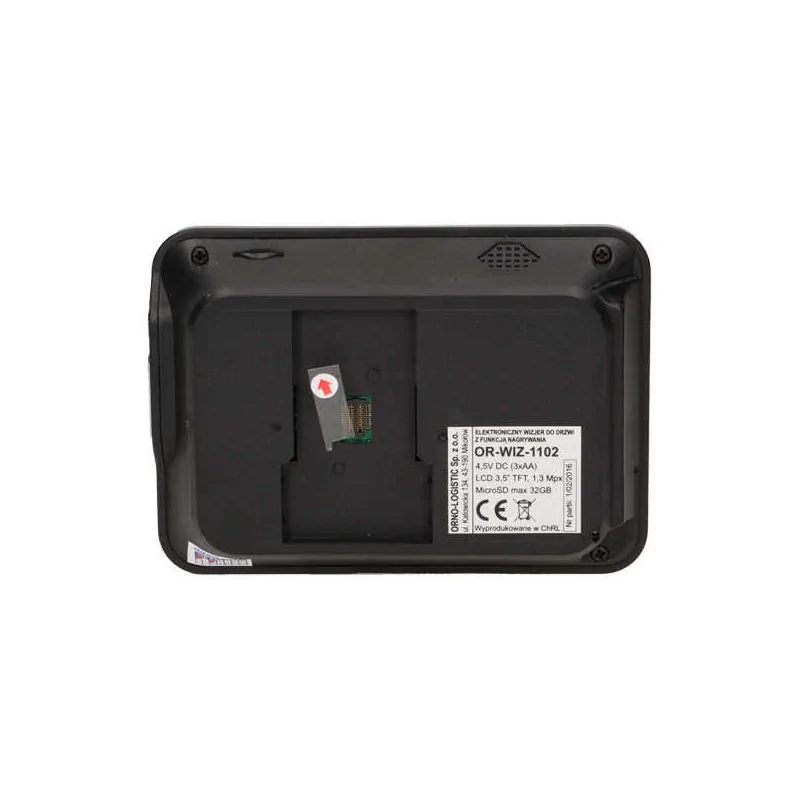 Wielofunkcyjny elektroniczny wizjer do drzwi OR-WIZ-1102 firmy ORNO to świetne urządzenie, które zastąpi standardowy wizjer optyczny (tzw. judasz) w każdym domu, mieszkaniu. Został wyposażony w różne dodatkowe funkcje takie jak: dzwonek, funkcja nagrywania plików video i foto na kartę Micro SD o maksymalnej pojemności 32GB oraz oświetlenie nocne. Wizjer elektroniczny w kolorze czarnym zasilany jest trzema bateriami AA, a wielkość jego wyświetlacza LCD to 3,5 cala. Urządzenia te pozwalają na podgląd osoby stojącej bezpośrednio przed drzwiami. Kamerka przystosowana jest do montażu w miejscu tradycyjnych wizjerów optycznych o średnicy otworu 14mm-22mm. Produkt posiada 32 dźwięki dzwonka do wyboru i sensor 1,3 Mpix z funkcją zoom.