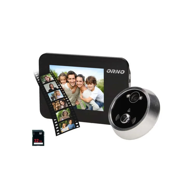 Elektroniczny wizjer do drzwi na baterie z dzwonkiem podświetleniem nocnym zoomem i funkcją nagrywania na kartę OR-WIZ-1102 ORNO