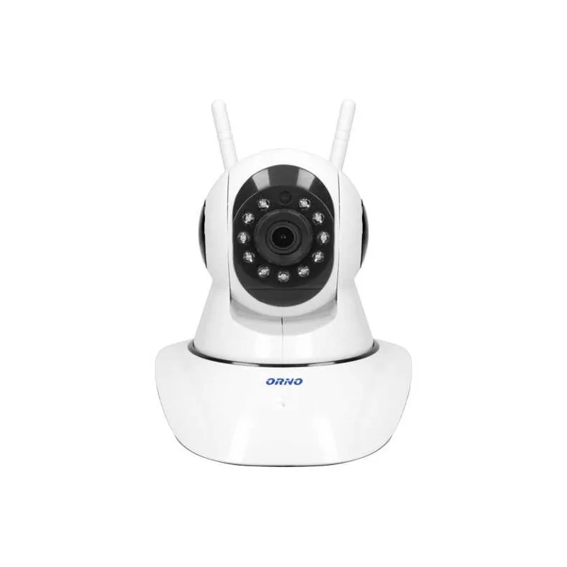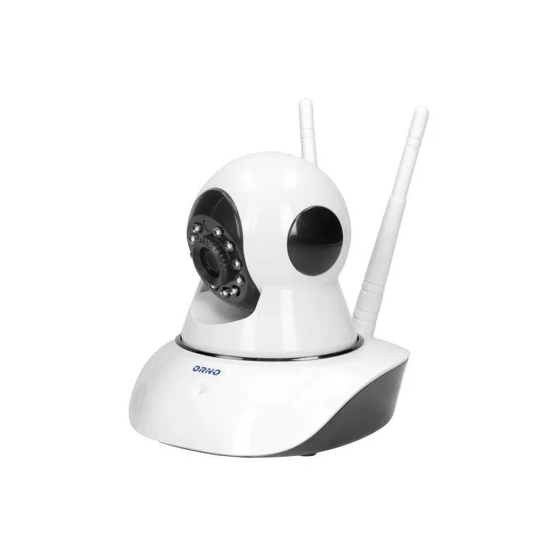 Wewnętrzna monitorująca kamera OR-MT-GV-1807 marki ORNO służy do monitorowania domu lub biura za pomocą tabletu, smartfona lub przeglądarki internetowej z każdego miejsca na świecie, dzięki darmowej aplikacji na urządzenia mobilne iOS i Android. Możliwe połączenie za pomocą WiFi lub domowej sieci LAN. Biała kamera monitorująca posiada obraz w rozdzielczości HD 1280 x 720. Produkt dodatkowo posiada podświetlenie diodami IR, co umożliwia widoczność w nocy. Kamera monitorująca wyposażona została w automatyczną zmianę filtrów, wbudowaną usługę DDNS, czyli dynamiczny system nazw domenowych. Dane przesyłane są za pomocą kompresji H.264 (MPEG-4).