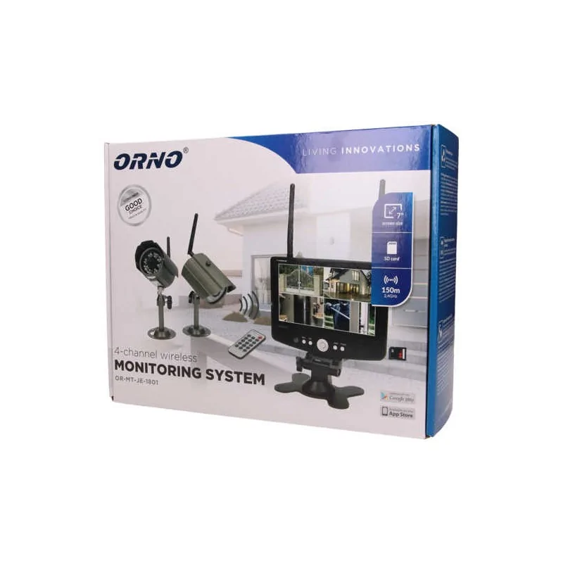 System do monitoringu 4-kanałowy bezprzewodowy CCTV LCD 7'' 150m OR-MT-JE-1801 ORNO