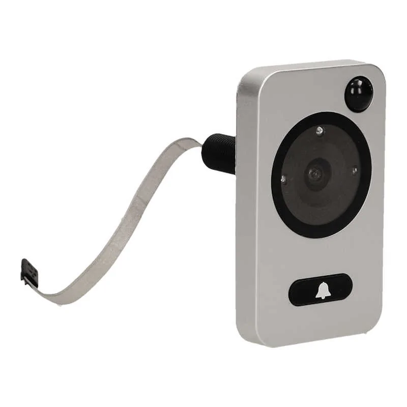 Srebrny elektroniczny wizjer do drzwi z czujnikiem ruchu, funkcją nagrywania na kartę micro SD oraz menu w 9 językach