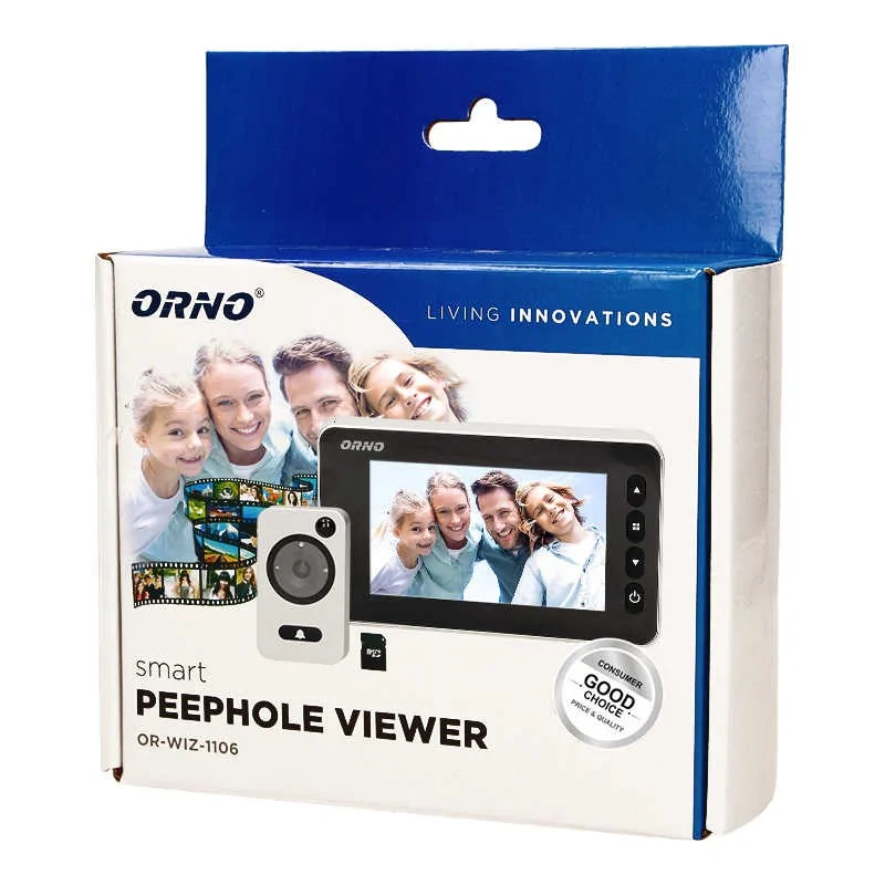 Wideo wizjer elektroniczny do drzwi na baterie z funkcją nagrywania czujnikiem ruchu i menu w 9 językach OR-WIZ-1106 ORNO