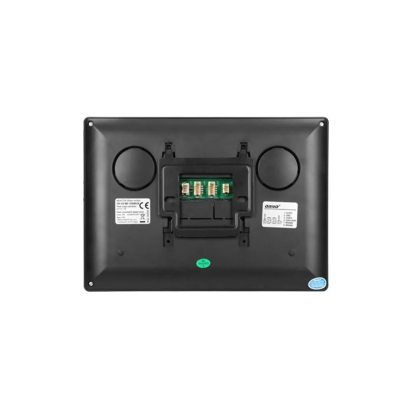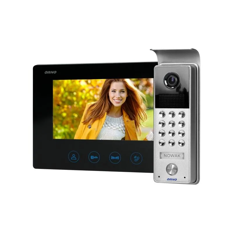 Zestaw wideodomofonowy bezsłuchawkowy CERES marki ORNO wyposażony został w ultra płaski wyświetlacz LCD o przekątnej ekranu 7''. Wideodomofon posiada dotykowy panel i podświetlane przyciski, za pomocą których można płynnie regulować parametrami monitora (głośność dzwonka i rozmowy oraz jasność i kolor obrazu). Produkt posiada 16 dźwięków dzwonka do wyboru. Zestaw zawiera również panel zewnętrzny z kamerą CMOS i miejscem na nazwisko oraz daszek ochronny.