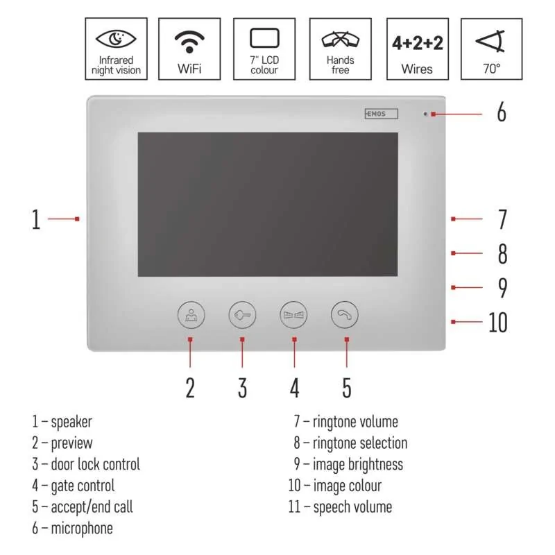 Wideodomofon WiFi sterowany telefonem kolorowy wyświetlacz HD H2014 EMOS