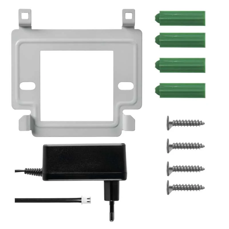 W skład kompletu wchodzą: 1× jednostka z kamerą do drzwi, 1× monitor LC oraz zasilacz.