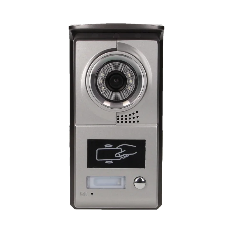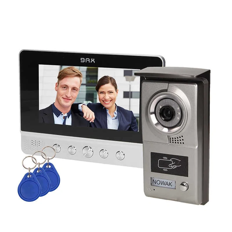 Głośnomówiący wideodomofon jednorodzinny z czytnikiem kart i breloków zbliżeniowych.