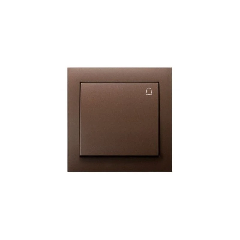 Dzwonkowy włącznik w kolorze brązowym serii KIER firmy OSPEL, przeznaczony do montażu podtynkowego. Włącznik posiada ramkę w komplecie.