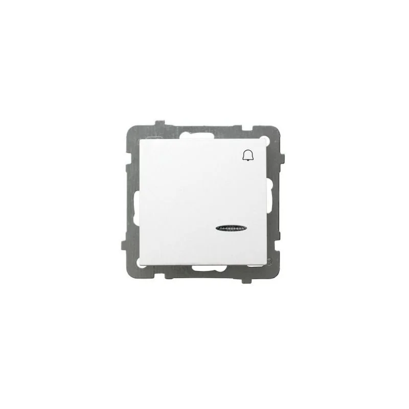 Przycisk dzwonkowy w kolorze białym z podświetleniem serii AS firmy OSPEL, przeznaczony do montażu podtynkowego. Przycisk wymaga dokupienia ramki serii AS firmy OSPEL.