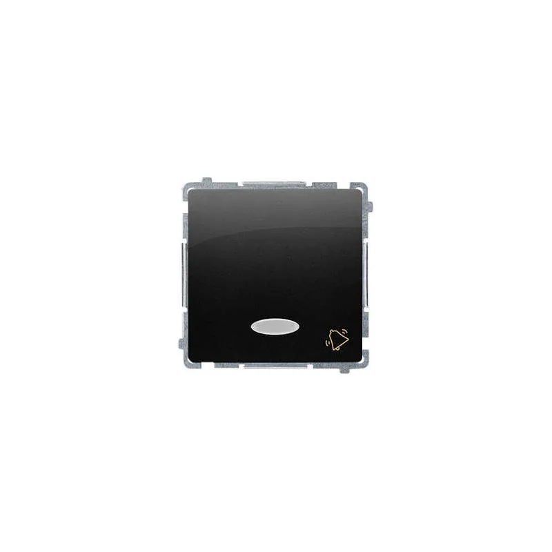 Przycisk dzwonek monostabilny serii Simon Basic marki Kontakt-Simon w kolorze czarny mat, w wersji z podświetleniem led przeznaczony jest do montażu podtynkowego. Na klawiszu umieszczony został piktogram dzwonka. Do przycisku należy dokupić standardową ramkę instalacyjną serii Simon Basic.