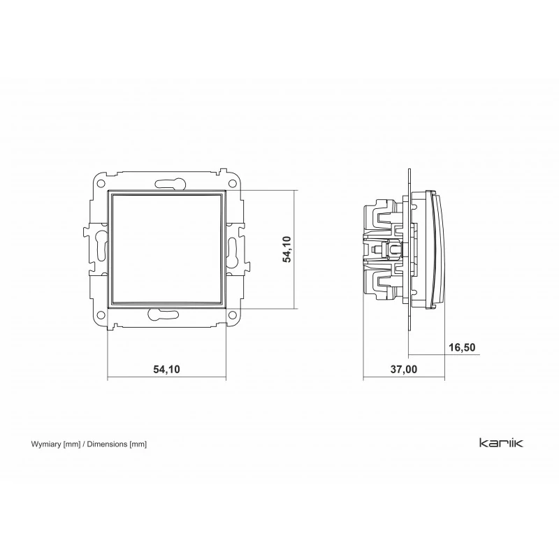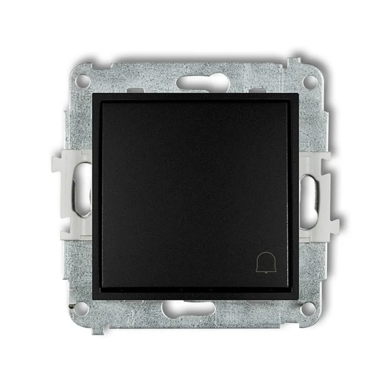Przycisk dzwonkowy zwierny serii ICON marki KARLIK przeznaczony jest do montażu podtynkowego. Produkt sprzedawany jest bez ramki w zestawie i wyposażony został w jeden klawisz w kolorze czarnym z piktogramem dzwonka. Do prawidłowego montażu należy osobno dokupić uniwersalną, standardową ramkę instalacyjną tej samej serii ICON firmy KARLIK. Ramki dostępne są w różnych wersjach kolorystycznych oraz kształtach (okrągły, zaokrąglony, kwadratowy), w krotnościach 1-5. Każdy mechanizm wyposażony jest w zestawie w ramkę pośrednią w kolorze mechanizmu, którą można wymienić. Ramki pośrednie dostępne są w 20 kolorach.