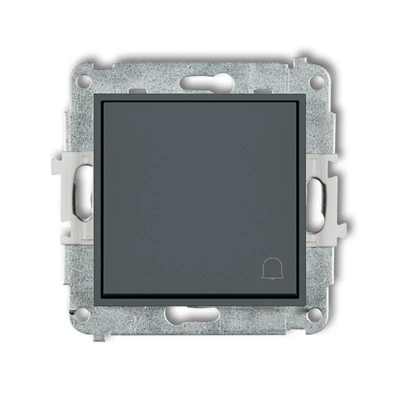 Przycisk dzwonkowy zwierny serii ICON marki KARLIK przeznaczony jest do montażu podtynkowego. Produkt sprzedawany jest bez ramki w zestawie i wyposażony został w jeden klawisz w kolorze grafitowym matowym z piktogramem dzwonka. Do prawidłowego montażu należy osobno dokupić uniwersalną, standardową ramkę instalacyjną tej samej serii ICON firmy KARLIK. Ramki dostępne są w różnych wersjach kolorystycznych oraz kształtach (okrągły, zaokrąglony, kwadratowy), w krotnościach 1-5. Każdy mechanizm wyposażony jest w zestawie w ramkę pośrednią w kolorze mechanizmu, którą można wymienić. Ramki pośrednie dostępne są w 20 kolorach.