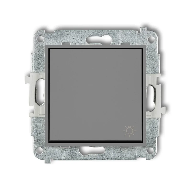 Przycisk światła zwierny serii ICON marki KARLIK przeznaczony jest do montażu podtynkowego. Produkt sprzedawany jest bez ramki w zestawie i wyposażony został w jeden klawisz w kolorze szarym matowym z piktogramem żarówki. Do prawidłowego montażu należy osobno dokupić uniwersalną, standardową ramkę instalacyjną tej samej serii ICON firmy KARLIK. Ramki dostępne są w różnych wersjach kolorystycznych oraz kształtach (okrągły, zaokrąglony, kwadratowy), w krotnościach 1-5. Każdy mechanizm wyposażony jest w zestawie w ramkę pośrednią w kolorze mechanizmu, którą można wymienić. Ramki pośrednie dostępne są w 20 kolorach.