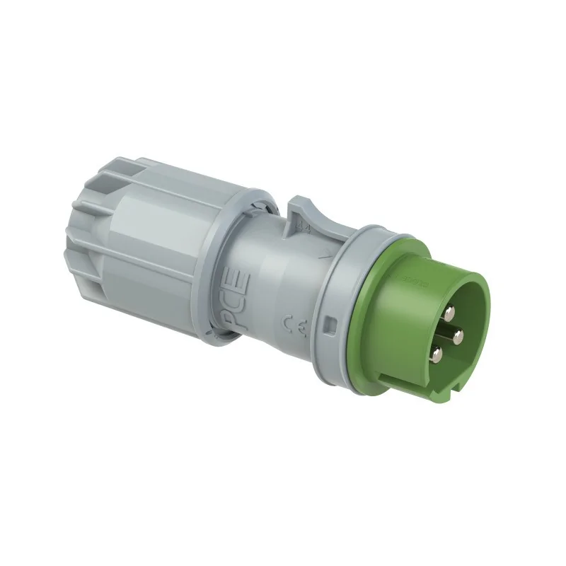 Wtyka przenośna marki PCE, w kolorze szarym z zielonym elementem posiada trzy bolce. Wtyka pracuje z natężeniem równym 32A. Jest przeznaczona do pracy w trudnych warunkach ze względu na wysoki stopień ochrony IP44. Wtyczka przenośna PCE jest łatwa w montażu, nie wymaga konserwacji.