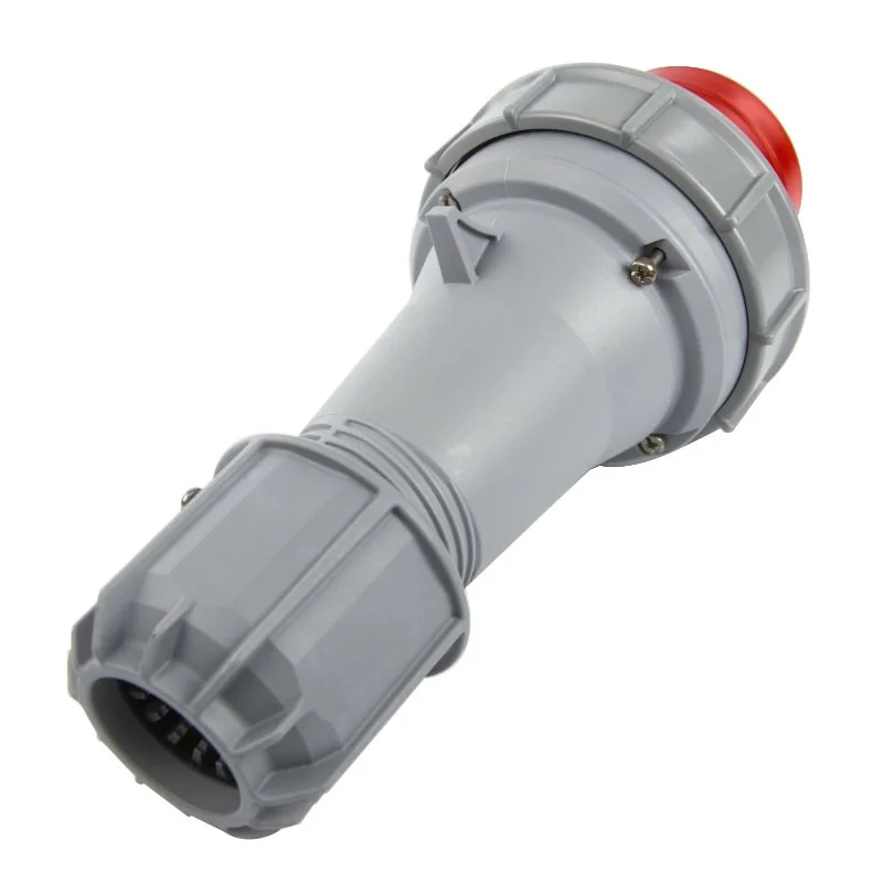 Izolowana wtyka przenośna w kolorze szarym z czerwonym elementem posiada pięć bolców. Wtyka pracuje z natężeniem równym 63A. Jest przeznaczona do pracy w trudnych warunkach ze względu na wysoki stopień ochrony IP 67. Produkt objęty jest 2 letnią gwarancją. Wtyka odporna jest na uderzenia, idealna do pracy w ekstremalnych warunkach. Wtyczka przenośna PCE jest łatwa w montażu, nie wymaga konserwacji. Jest to etyka typu power twist - posiada system szybkiego zamykania.