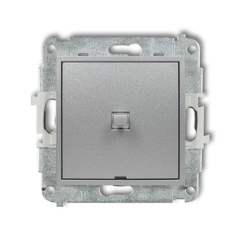 Włącznik jednobiegunowy w stylu amerykańskim serii MINI firmy KARLIK w kolorze srebrny metalik, przeznaczony do montażu podtynkowego. Włącznik wymaga dokupienia ramki serii DECO MINI firmy KARLIK.