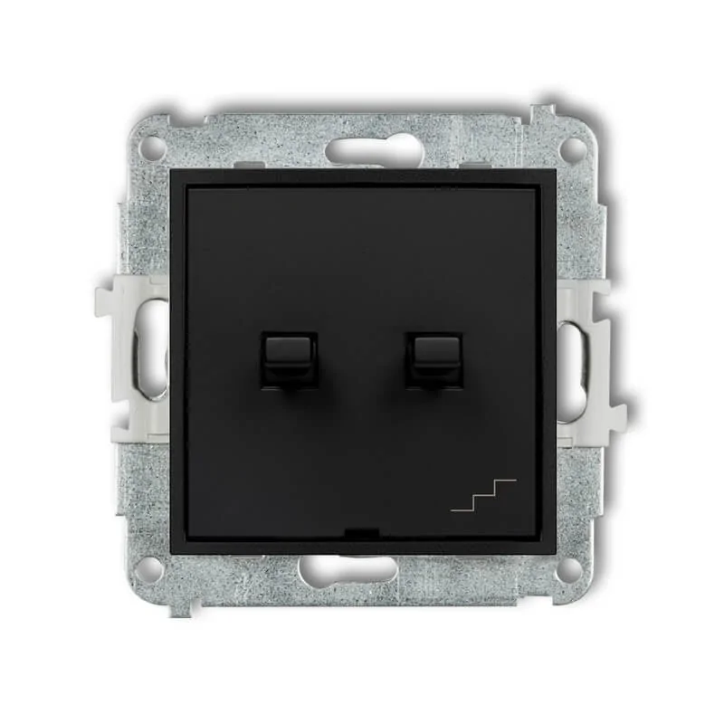 Włącznik schodowy w stylu amerykańskim serii MINI firmy KARLIK w kolorze czarnym matowym, przeznaczony do montażu podtynkowego. Włącznik wymaga dokupienia ramki serii MINI firmy KARLIK.