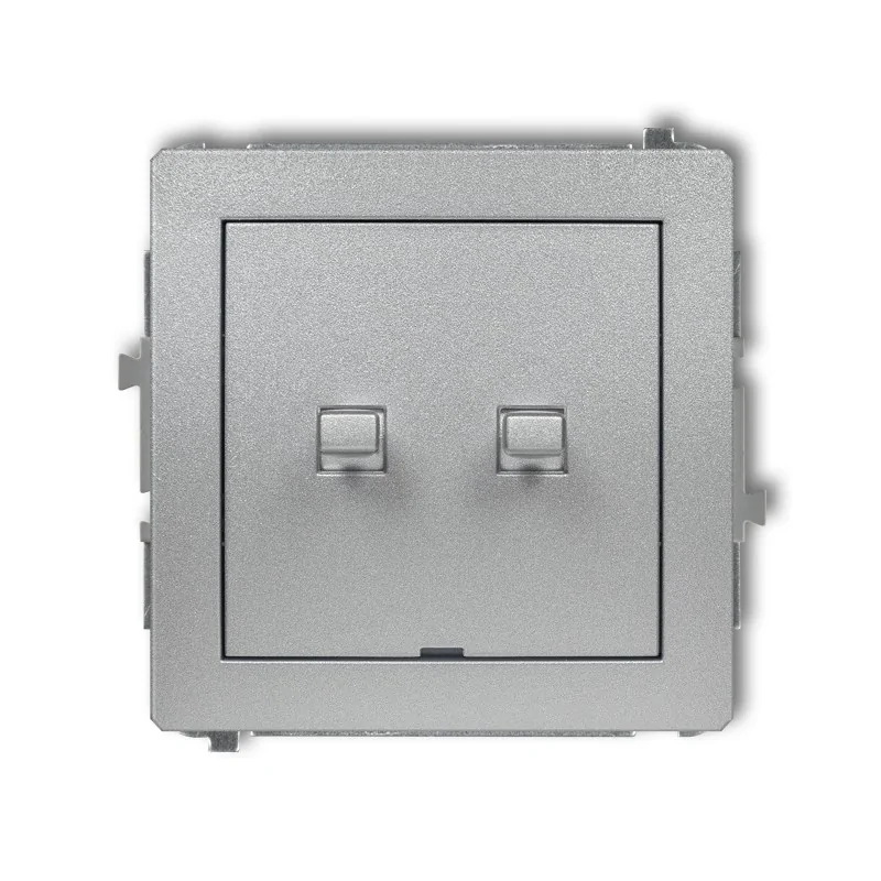 Włącznik podwójny schodowy w stylu amerykańskim 7DWPUS-33.1 to osprzęt elektroinstalacyjny w kolorze srebrnym serii DECO polskiej firmy KARLIK. Model posiada dwa klawisze dźwigniowe- jest to wersja bez piktogramu. Każdy z klawiszy załącza inny obwód. Łącznik posiada stopień szczelności IP20. Brak możliwości stworzenia wersji hermetycznej. Włącznik schodowy sprzedawany jest bez ramki, należy dokupić ją osobno. Włącznik 7DWPUS-33.1 prezentuje się interesująco zarówno w tradycyjnych, jak i nowoczesnych wnętrzach. Model nie współpracuje z modułami podświetlającymi. Idealny na klatki schodowe. Seria DECO posiada ramki standardowe w krotnościach od 1-5, ramki pośrednie oraz wypełniające dostępne w różnych kolorach, co pozwala na stworzenie własnej kompozycji.
