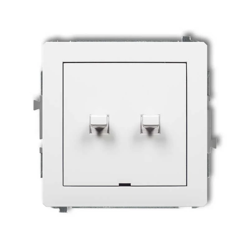 Włącznik żaluzjowy w stylu amerykańskim DWPUS-8 serii DECO firmy KARLIK przeznaczony jest do montażu podtynkowego. Do produktu należy dokupić ramkę instalacyjną z tej samej serii oraz firmy w dowolnym kolorze. Brak możliwości zastosowania modułów podświetlających. Włączniki amerykańskie charakteryzują się ciekawym wzornictwem, dlatego doskonale się prezentują w każdym wnętrzu. Mechanizmy gniazd i włączników oraz ramki sprzedawane są odddzielnie. Włączniki amerykańskie serii DECO nie występują w wersji hermetycznej (brak możliwości zastosowania uszczelniacza).