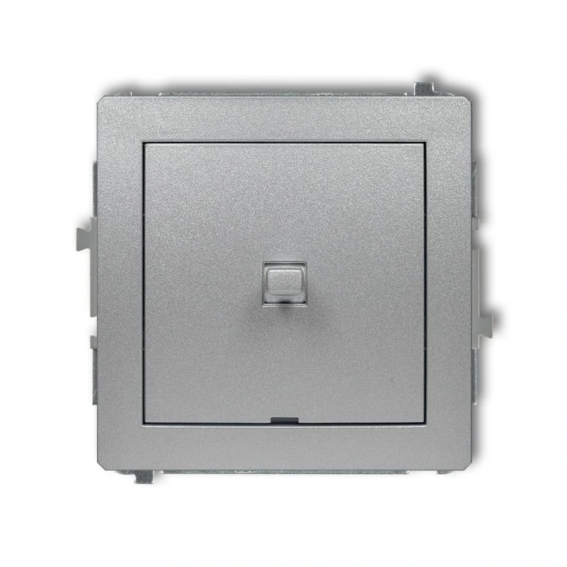 Włącznik jednobiegunowy w stylu amerykański serii DECO firmy KARLIK w kolorze srebrnym, przeznaczony do montażu podtynkowego. Włącznik wymaga dokupienia ramki serii DECO firmy KARLIK.