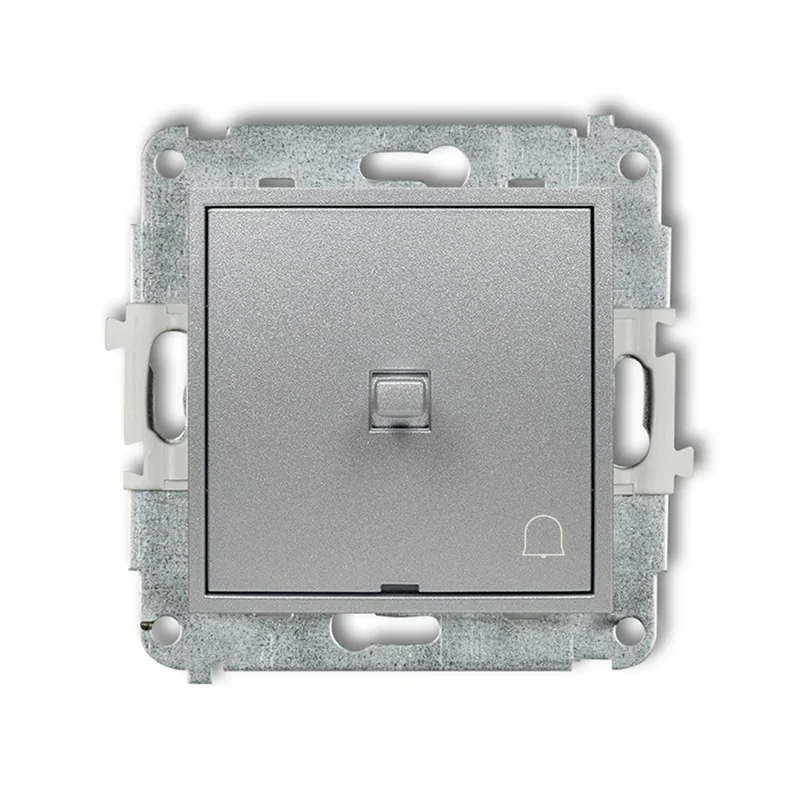Włącznik dzwonkowy zwierny w stylu amerykańskim serii MINI firmy KARLIK w kolorze srebrnym, przeznaczony do montażu podtynkowego. Włącznik wymaga dokupienia ramki serii MINI firmy KARLIK.