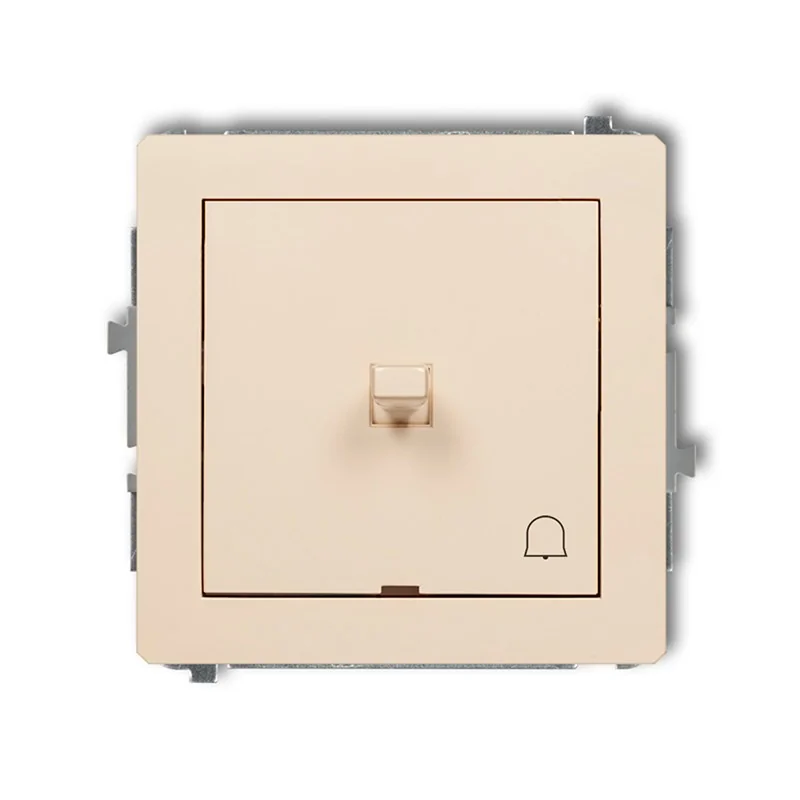 Zwierny przycisk dzwonkowy amerykański serii DECO polskiej marki KARLIK przeznaczony jest do montażu podtynkowego. Produkt wyposażony został w klawisz dźwigniowy, który po naciśnięciu odbija. W dolnym rogu został również umieszczony piktogram dzwonka. Włączniki amerykańskie nie wstępują w wersji hermetycznej, dlatego nie ma możliwości zastosowania w nich uszczelniacza. Istnieje natomiast możliwość zamontowania modułu podświetlającego. Beżowy przycisk dzwonkowy amerykański sprzedawany jest bez ramki w zestawie. W serii DECO dostępne są ramki w krotnościach 1-5 w różnych kolorach. W ofercie znajdują się również ramki wypełniające- niweluje szczelinę pomiędzy ramką standardową, a ścianą (opcja dodatkowa) oraz pośrednie w bogatej kolorystyce, co pozwala na stworzenie własnej kompozycji.