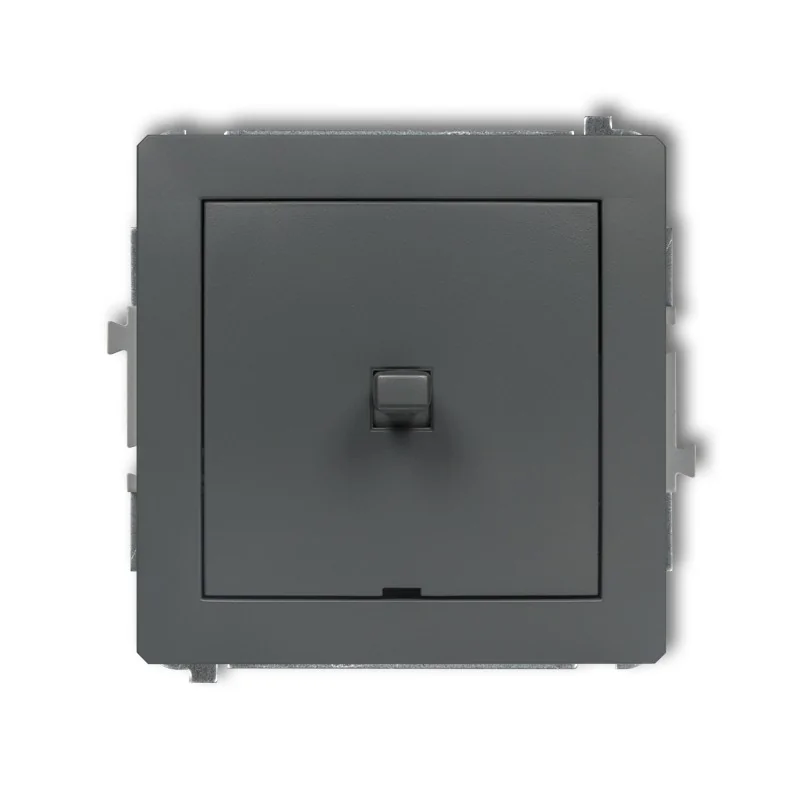 Włącznik jednobiegunowy w stylu amerykańskim serii DECO firmy KARLIK w kolorze grafitowy mat, przeznaczony do montażu podtynkowego. Włącznik wymaga dokupienia ramki serii DECO firmy KARLIK.