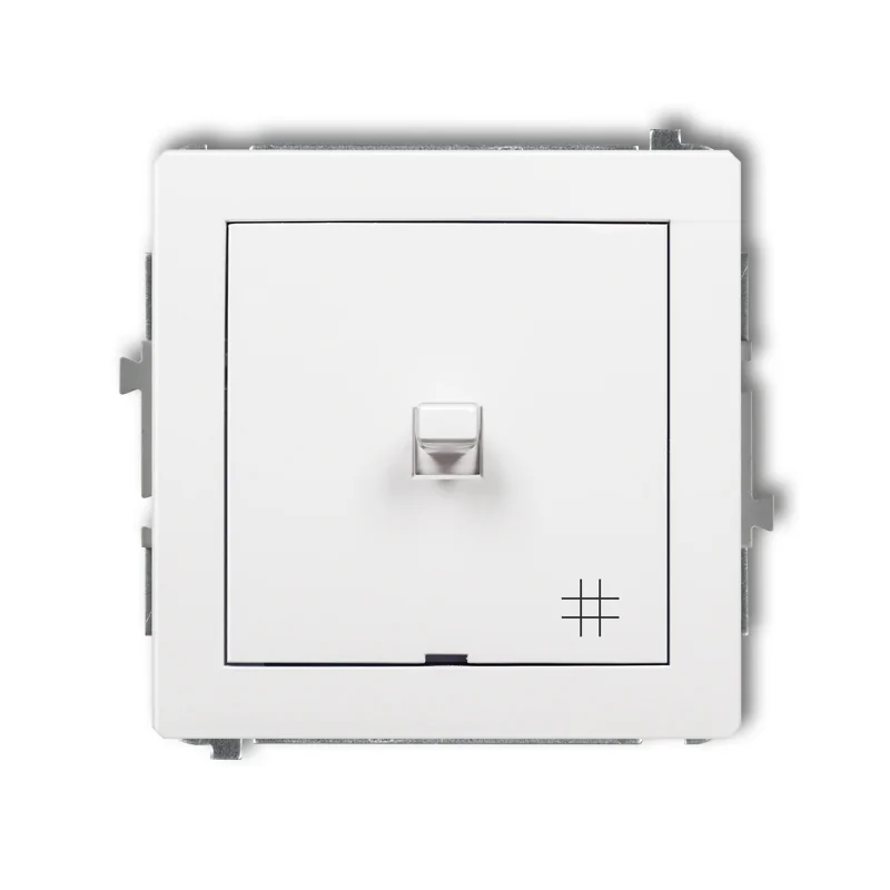 Amerykański łącznik krzyżowy DWPUS-6 serii DECO firmy KARLIK przeznaczony jest do montażu podtynkowego i jest w kolorze białym. W prawym dolnym rogu znajduje się piktogram, który jest znakiem rozpoznawczym dla łączników krzyżowych. Ze względu na stopień odporności IP20 produkt przeznaczony jest do użytku wewnętrznego. Włączniki serii DECO występuja również w wersji podświetlanej (należy dokupić moduł podświetlający), ale nie są dostępne w wersji IP44 (brak możliwości zastosowania uszczelniacza U-1).