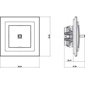 - Wymiary: 90,20 x 90,20 x 47 mm