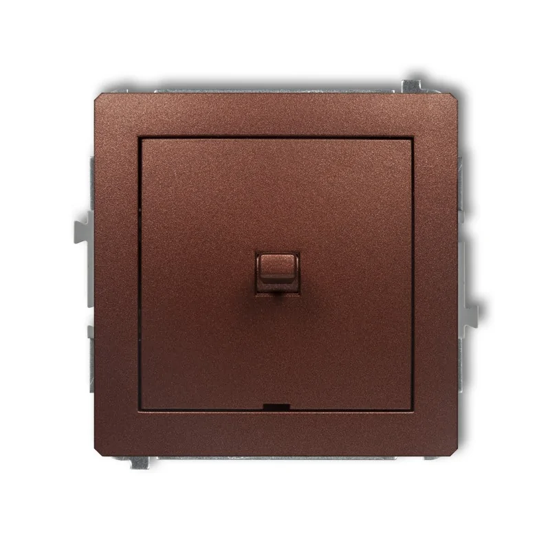 Włącznik jednobiegunowy w stylu amerykańskim serii DECO firmy KARLIK w kolorze brązowym metalicznym, przeznaczony do montażu podtynkowego. Łącznik wymaga dokupienia ramki serii DECO firmy KARLIK.