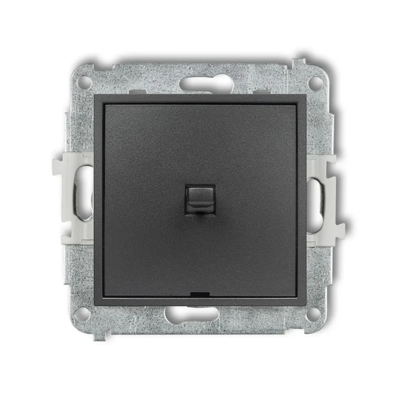 Włącznik jednobiegunowy w stylu amerykańskim serii MINI firmy KARLIK w kolorze grafitowym, przeznaczony do montażu podtynkowego. Włącznik wymaga dokupienia ramki serii DECO MINI firmy KARLIK.