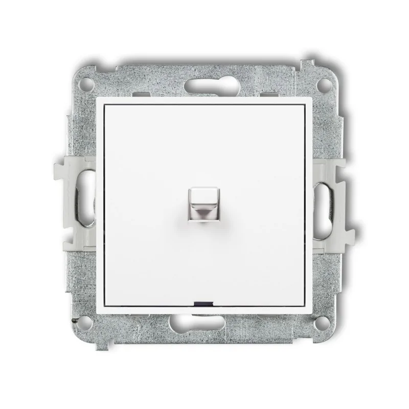 Włącznik schodowy w stylu amerykańskim serii MINI firmy KARLIK w kolorze białym, przeznaczony do montażu podtynkowego. Włącznik wymaga dokupienia ramki serii MINI firmy KARLIK. Model bez piktogramu.